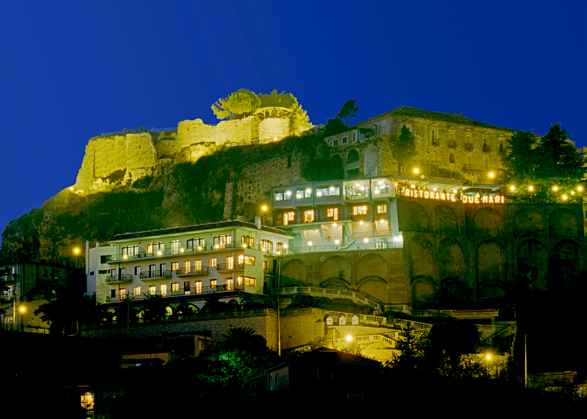 L’Hotel Residence Ristorante DUE MARI è ubicato nel centro storico di Tiriolo, a 700 metri s.l.m. a soli 18 Km dal capoluogo Catanzaro e 27 Km da Lamezia Terme, nel punto più stretto d’Italia e d'Europa, dove la felice posizione geografica permette di godere di un panorama unico di grande suggestione, la visione contemporanea dei mari Jonio (golfo di Squillace) e Tirreno (golfo di Lamezia Terme), delle isole Eolie e dei vulcani Stromboli ed Etna.” Secondo Omero, già Ulisse attraversando la Terra dei Feaci ha ammirato questo meraviglioso panorama (A.Wolf)”. TIRIOLO, TAPPA DELLA CICLOVIA DEI PARCHI DELLA CALABRIA.