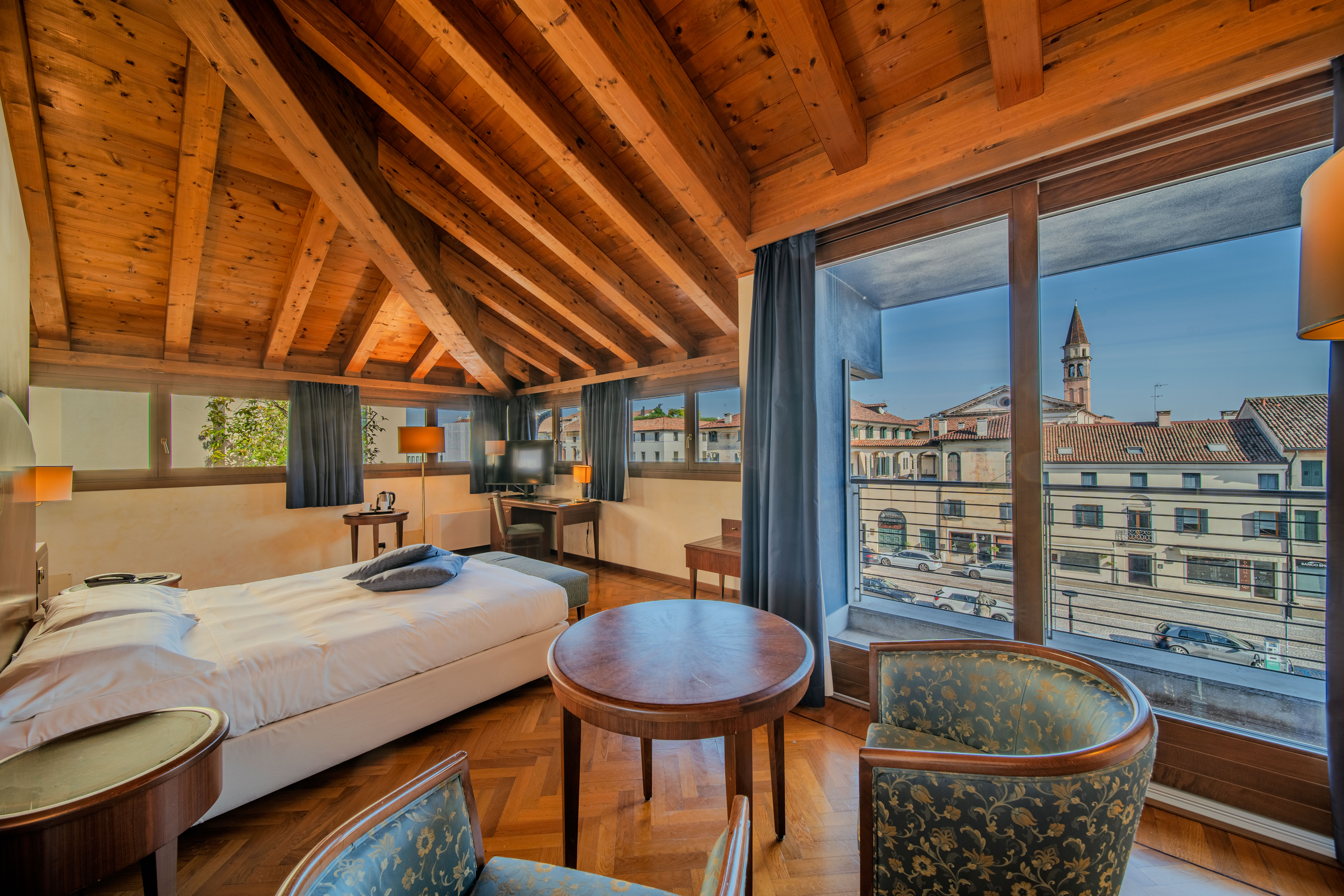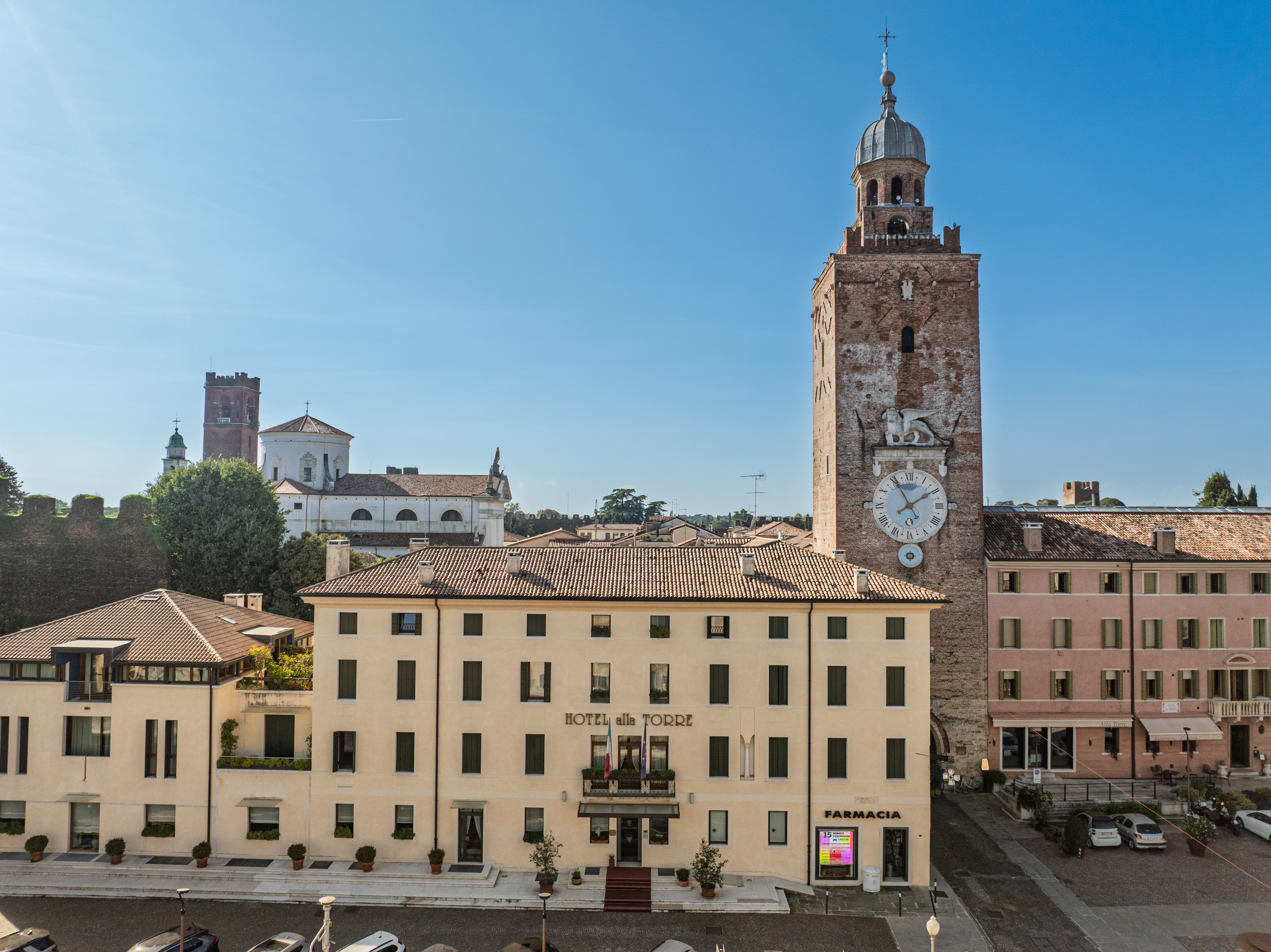 Das Hotel alla torre ist ein 4* Hotel Ergebnis der Restaurierung eines Gebäudes eines der charakteristischsten und Original des historischen Zentrums von Castelfranco Veneto. In zentraler Lage in der Nähe des Stadtturmes und die mittelalterlichen Burg, hat es 54 Zimmer und bietet alle Annehmlichkeiten und die Dienste auch für diejenigen, die für einen gemütlichen Aufenthalt im Herzen von Treviso mit dem Fahrrad fahren. Aufgrund seiner Lage, nur wenige Schritte von den wichtigsten Sehenswürdigkeiten und nur 5 Minuten vom Bahnhof und das Fahrrad Ezzelini, ist das Hotel ein idealer Ausgangspunkt für in der Stadt Sightseeing und für Ausflüge zu den Schätzen des Veneto zu entdecken.