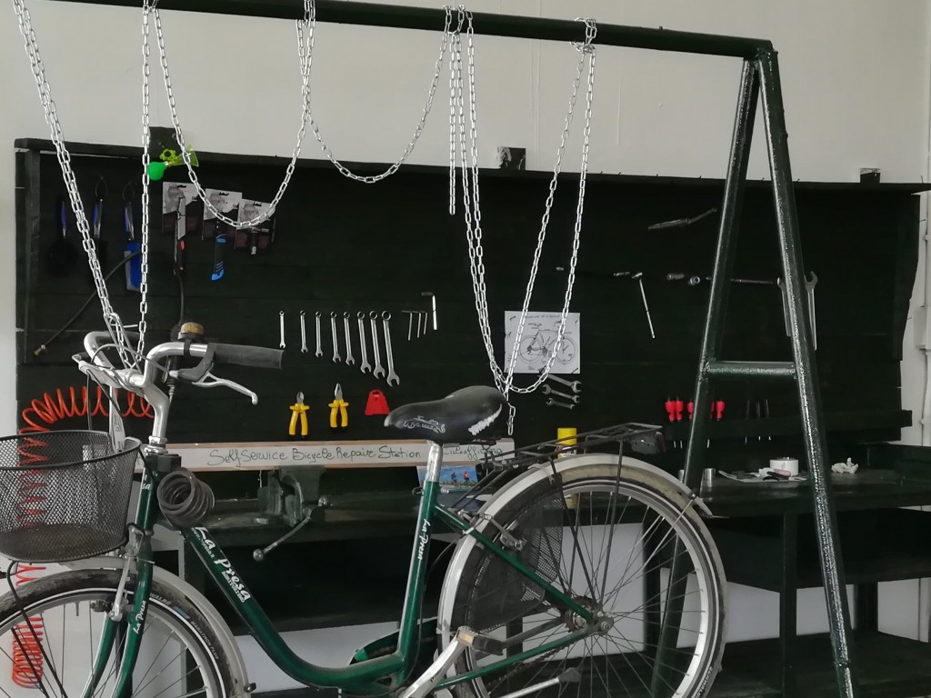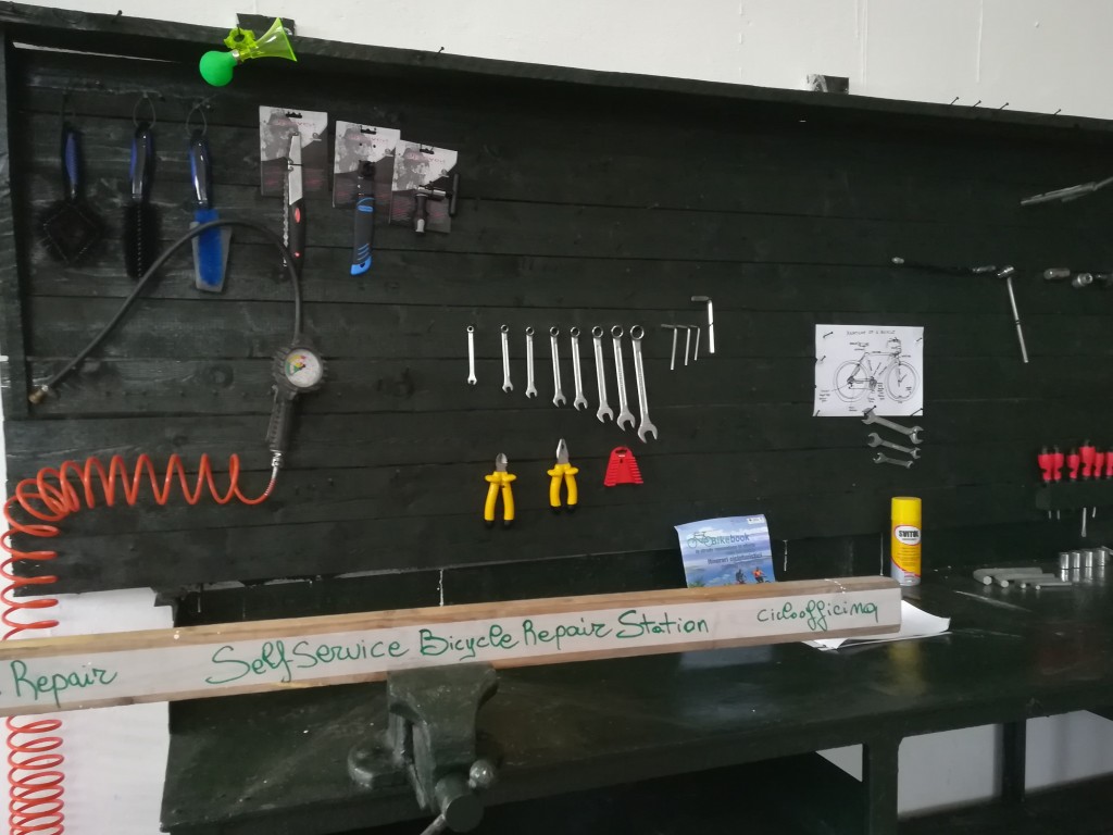 Luogo chiuso coperto e sicuro per le bici con attrezzi per la manutenzione di base